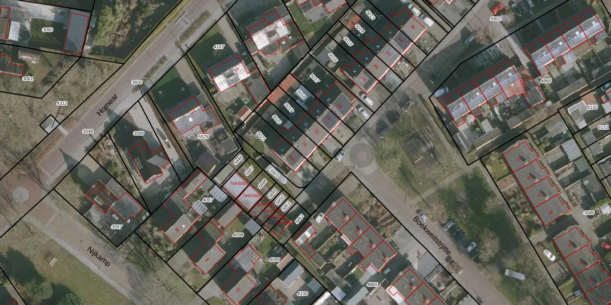Boekweitstrjitte 74 is gelegen op kadastraal perceel SHZ00C5020. Deze kadastrale aanduiding is uniek en wordt gebruikt door het Kadaster om eigendomsrechten en andere zakelijke rechten vast te leggen. Het perceel maakt onderdeel uit van de kadastrale gemeente Surhuizum.