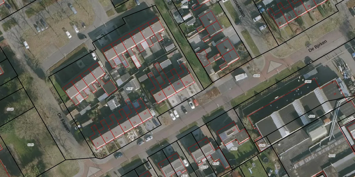 Het perceel waarop De Bjirken 19 staat heeft een oppervlakte van 4067 m². Dit is een zeer groot perceel. De perceeloppervlakte wordt geregistreerd door het Kadaster. Gedetailleerde informatie over de maten van dit perceel kunt u vinden in het rapport Kadastrale kaart met maatvoering van De Bjirken 19.