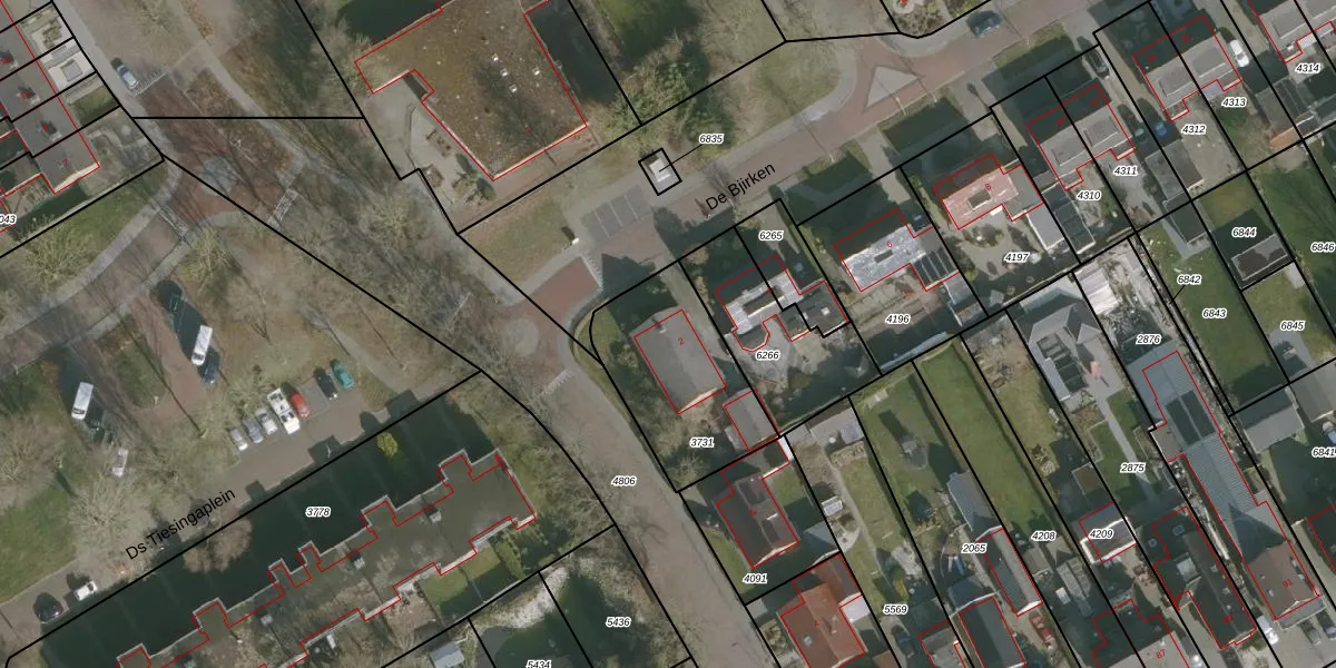 Het perceel waarop De Bjirken 2 staat heeft een oppervlakte van 507 m². Dit is een groot perceel. De perceeloppervlakte wordt geregistreerd door het Kadaster. Gedetailleerde informatie over de maten van dit perceel kunt u vinden in het rapport Kadastrale kaart met maatvoering van De Bjirken 2.