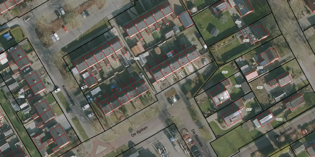 Het perceel waarop De Bjirken 33 staat heeft een oppervlakte van 4610 m². Dit is een zeer groot perceel. De perceeloppervlakte wordt geregistreerd door het Kadaster. Gedetailleerde informatie over de maten van dit perceel kunt u vinden in het rapport Kadastrale kaart met maatvoering van De Bjirken 33.