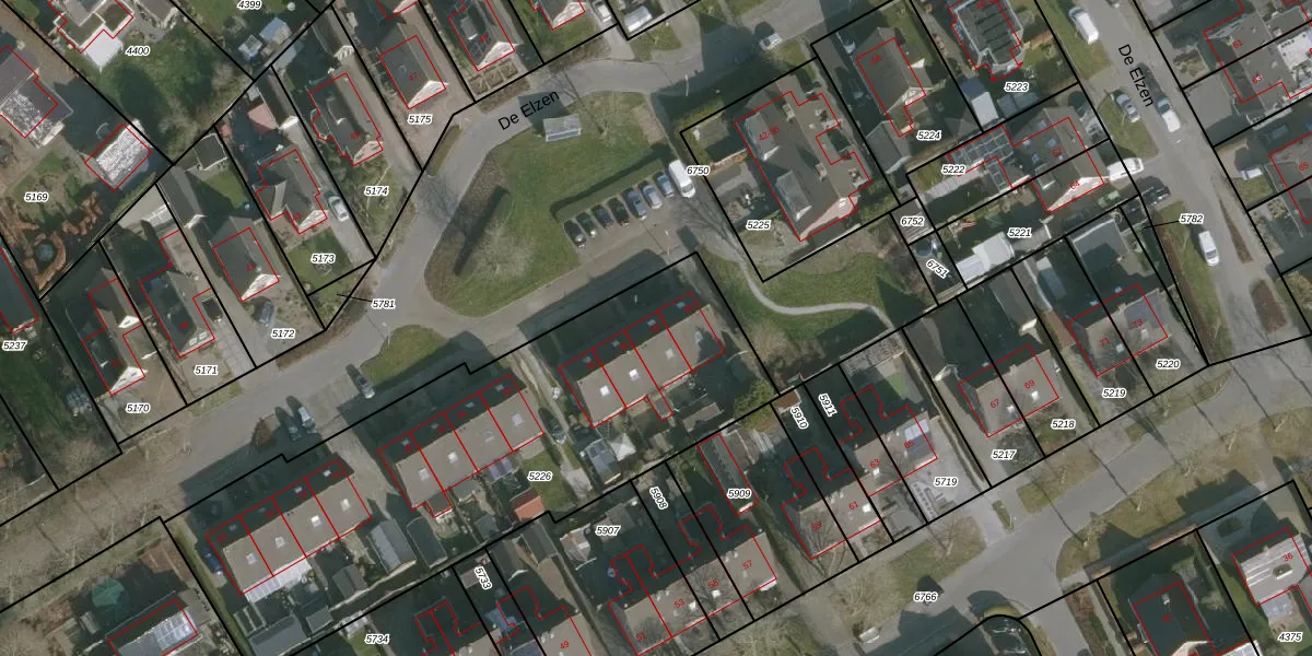 Het perceel waarop De Elzen 38 staat heeft een oppervlakte van 2386 m². Dit is een zeer groot perceel. De perceeloppervlakte wordt geregistreerd door het Kadaster. Gedetailleerde informatie over de maten van dit perceel kunt u vinden in het rapport Kadastrale kaart met maatvoering van De Elzen 38.