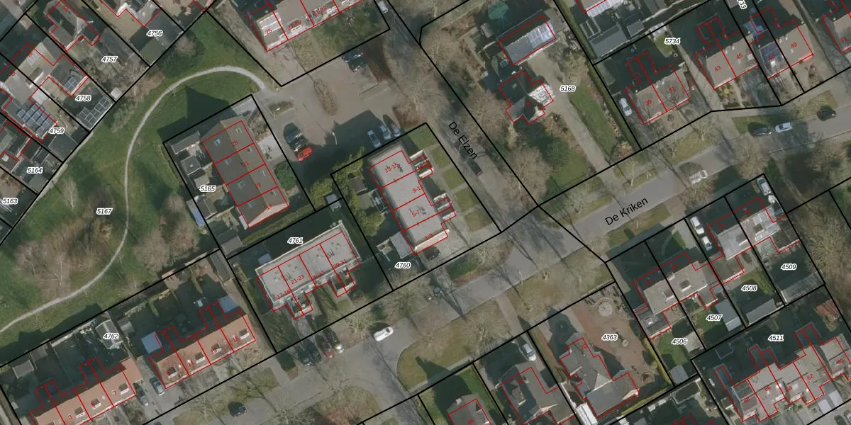 Het perceel waarop De Elzen 5 staat heeft een oppervlakte van 845 m². Dit is een groot perceel. De perceeloppervlakte wordt geregistreerd door het Kadaster. Gedetailleerde informatie over de maten van dit perceel kunt u vinden in het rapport Kadastrale kaart met maatvoering van De Elzen 5.