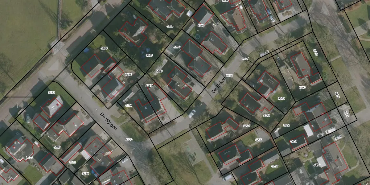 Gebruik de zoekbalk of klik op een perceel voor informatie over de adressen binnen dit perceel.