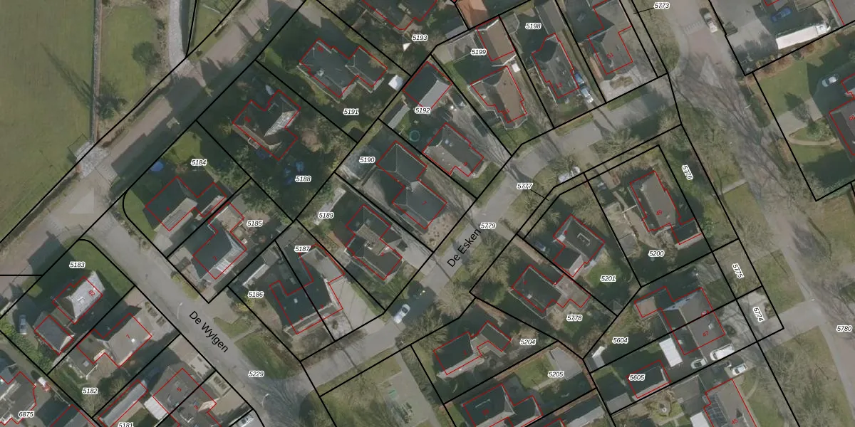 Het perceel waarop De Esken 7 staat heeft een oppervlakte van 485 m². Dit is een groot perceel. De perceeloppervlakte wordt geregistreerd door het Kadaster. Gedetailleerde informatie over de maten van dit perceel kunt u vinden in het rapport Kadastrale kaart met maatvoering van De Esken 7.