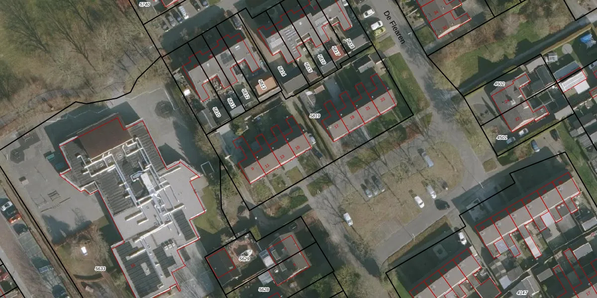 De Flearen 15 is gelegen op kadastraal perceel SHZ00C5819. Deze kadastrale aanduiding is uniek en wordt gebruikt door het Kadaster om eigendomsrechten en andere zakelijke rechten vast te leggen. Het perceel maakt onderdeel uit van de kadastrale gemeente Surhuizum.