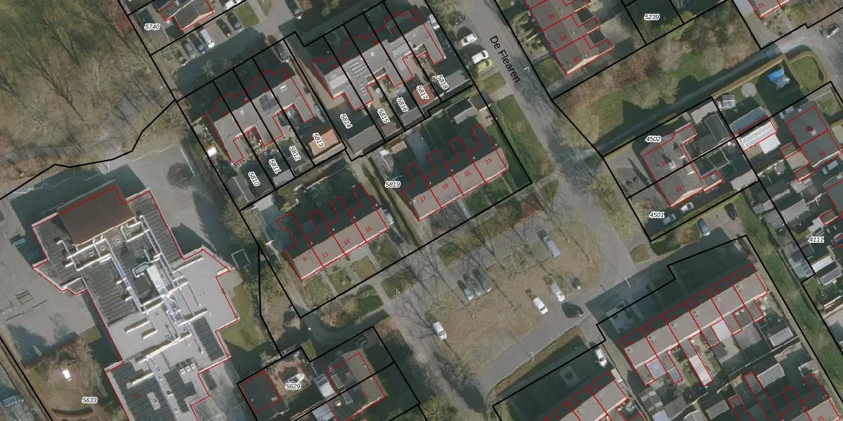 Het perceel waarop De Flearen 17 staat heeft een oppervlakte van 1754 m². Dit is een zeer groot perceel. De perceeloppervlakte wordt geregistreerd door het Kadaster. Gedetailleerde informatie over de maten van dit perceel kunt u vinden in het rapport Kadastrale kaart met maatvoering van De Flearen 17.