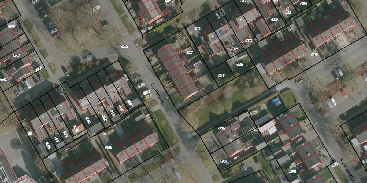 Het perceel waarop De Flearen 32 staat heeft een oppervlakte van 981 m². Dit is een groot perceel. De perceeloppervlakte wordt geregistreerd door het Kadaster. Gedetailleerde informatie over de maten van dit perceel kunt u vinden in het rapport Kadastrale kaart met maatvoering van De Flearen 32.
