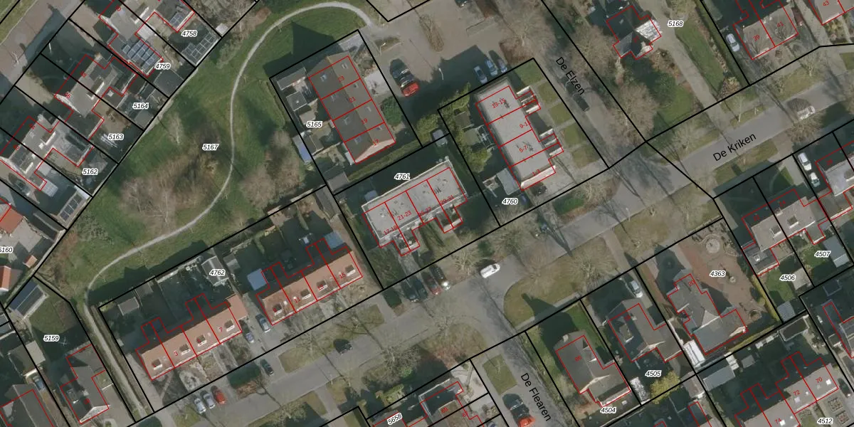 Het perceel waarop De Kriken 27 staat heeft een oppervlakte van 776 m². Dit is een groot perceel. De perceeloppervlakte wordt geregistreerd door het Kadaster. Gedetailleerde informatie over de maten van dit perceel kunt u vinden in het rapport Kadastrale kaart met maatvoering van De Kriken 27.