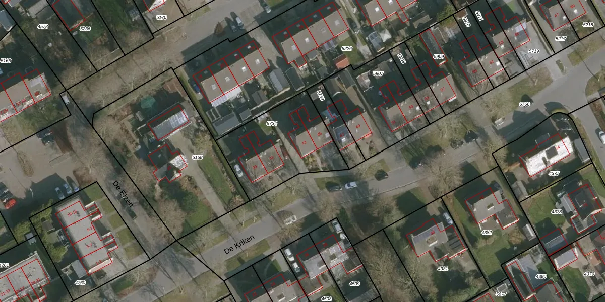 Het perceel waarop De Kriken 43 staat heeft een oppervlakte van 838 m². Dit is een groot perceel. De perceeloppervlakte wordt geregistreerd door het Kadaster. Gedetailleerde informatie over de maten van dit perceel kunt u vinden in het rapport Kadastrale kaart met maatvoering van De Kriken 43.