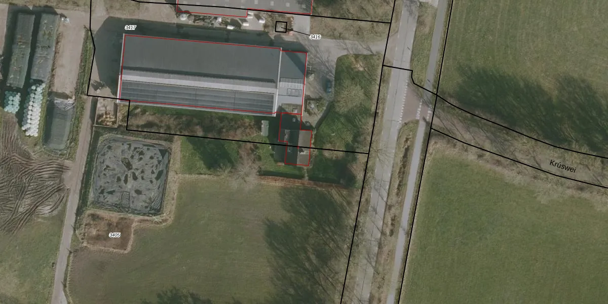 Het perceel waarop het adres ligt is DGH00-D-3405. De afkorting 'DGH00' staat voor kadastrale gemeente Drogeham. Het perceel is met 1,2 ha relatief groot. Het gemiddelde ligt in de kadastrale gemeente Drogeham op 6675,75 m². Het kleinste perceel in de kadastrale gemeente is 0 m² groot. De grootste perceeloppervlakte is 29,0 ha. Dit is het enige adres dat aanwezig is op het perceel. De huidige grenzen van het perceel zijn digitaal in de Basisregistratie Kadaster (BRK) geregistreerd op 15-01-1998.