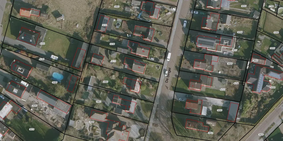 Gebruik de zoekbalk of klik op een perceel voor informatie over de adressen binnen dit perceel.