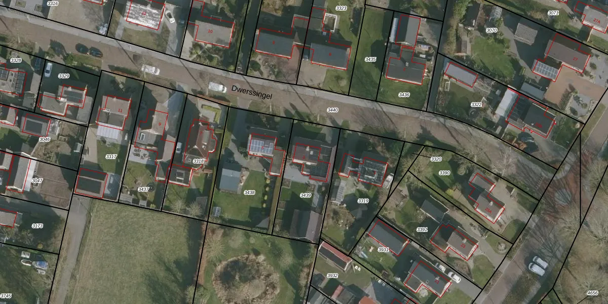 Dwerssingel 3 is gelegen op kadastraal perceel DGH00D3439. Deze kadastrale aanduiding is uniek en wordt gebruikt door het Kadaster om eigendomsrechten en andere zakelijke rechten vast te leggen. Het perceel maakt onderdeel uit van de kadastrale gemeente Drogeham.