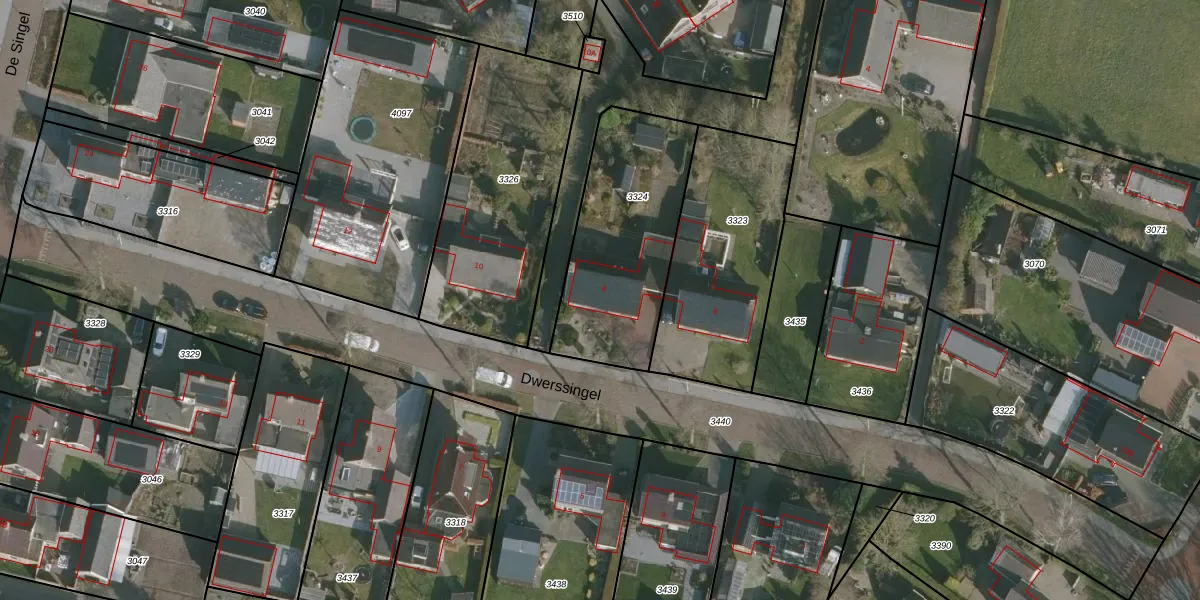 Gebruik de zoekbalk of klik op een perceel voor informatie over de adressen binnen dit perceel.