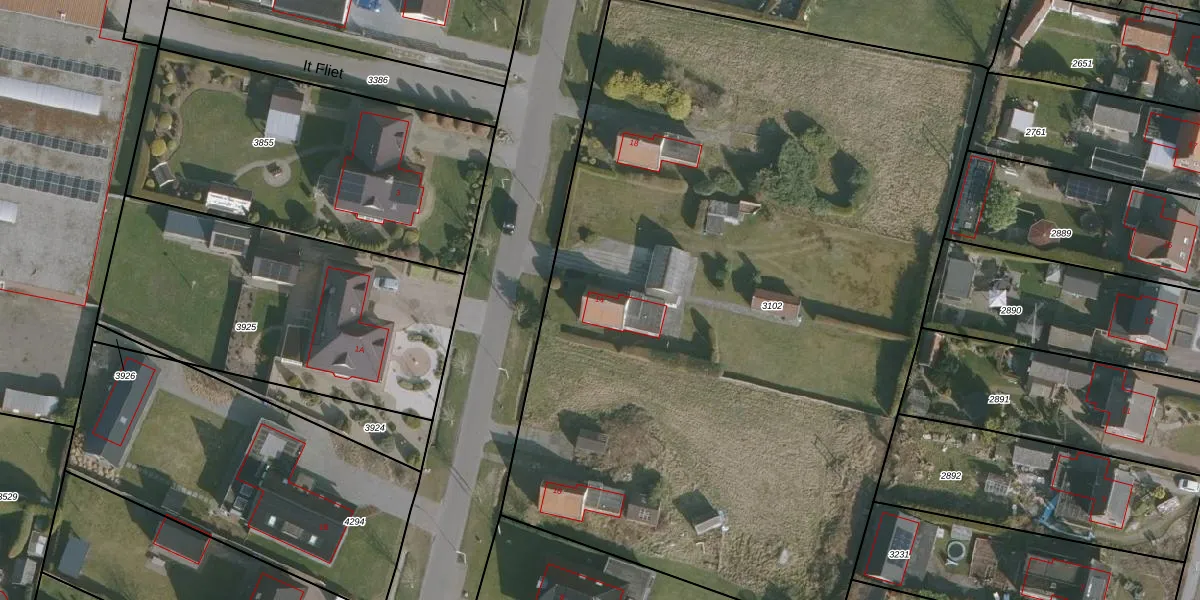 Het perceel waarop Fiifhuzen 14 staat heeft een oppervlakte van 5765 m². Dit is een zeer groot perceel. De perceeloppervlakte wordt geregistreerd door het Kadaster. Gedetailleerde informatie over de maten van dit perceel kunt u vinden in het rapport Kadastrale kaart met maatvoering van Fiifhuzen 14.