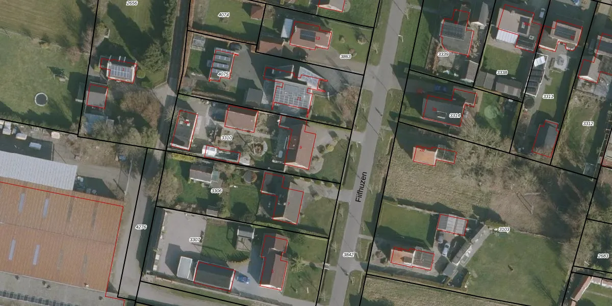 Fiifhuzen 9 is gelegen op kadastraal perceel DGH00D3310. Deze kadastrale aanduiding is uniek en wordt gebruikt door het Kadaster om eigendomsrechten en andere zakelijke rechten vast te leggen. Het perceel maakt onderdeel uit van de kadastrale gemeente Drogeham.