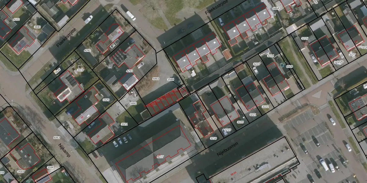 Het perceel waarop Flaeksstrjitte 39-A staat heeft een oppervlakte van 28 m². Dit is een klein perceel. De perceeloppervlakte wordt geregistreerd door het Kadaster. Gedetailleerde informatie over de maten van dit perceel kunt u vinden in het rapport Kadastrale kaart met maatvoering van Flaeksstrjitte 39-A.