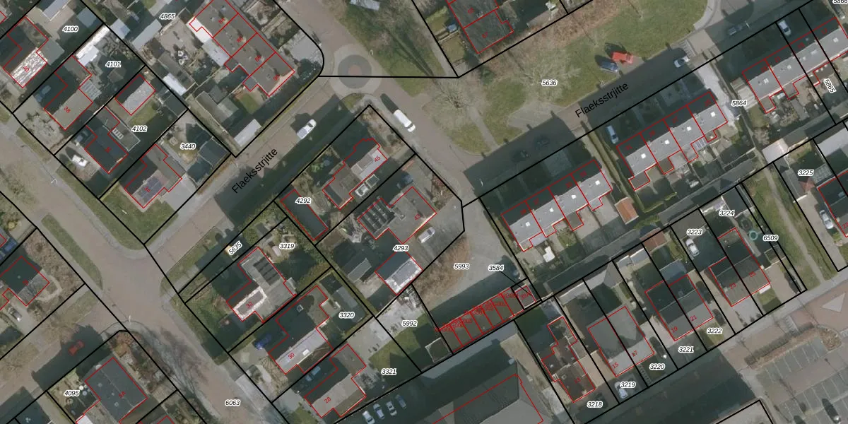 Het perceel waarop Flaeksstrjitte 43 staat heeft een oppervlakte van 700 m². Dit is een groot perceel. De perceeloppervlakte wordt geregistreerd door het Kadaster. Gedetailleerde informatie over de maten van dit perceel kunt u vinden in het rapport Kadastrale kaart met maatvoering van Flaeksstrjitte 43.