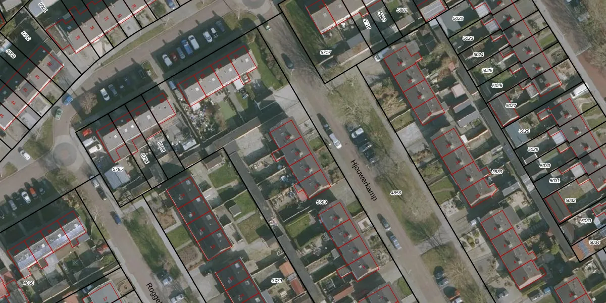 Het perceel waarop Hjouwerkamp 21 staat heeft een oppervlakte van 4102 m². Dit is een zeer groot perceel. De perceeloppervlakte wordt geregistreerd door het Kadaster. Gedetailleerde informatie over de maten van dit perceel kunt u vinden in het rapport Kadastrale kaart met maatvoering van Hjouwerkamp 21.