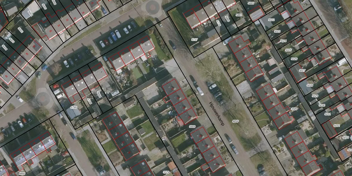 Het perceel waarop Hjouwerkamp 23 staat heeft een oppervlakte van 4102 m². Dit is een zeer groot perceel. De perceeloppervlakte wordt geregistreerd door het Kadaster. Gedetailleerde informatie over de maten van dit perceel kunt u vinden in het rapport Kadastrale kaart met maatvoering van Hjouwerkamp 23.
