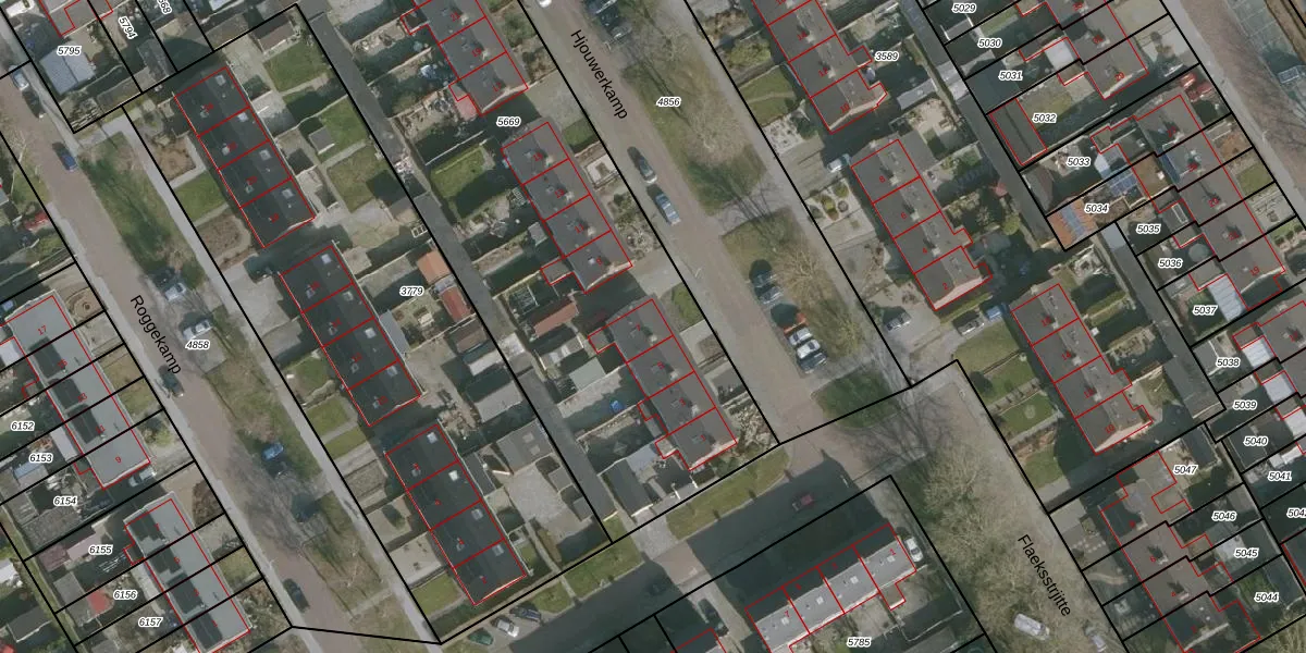 Het perceel waarop Hjouwerkamp 7 staat heeft een oppervlakte van 4102 m². Dit is een zeer groot perceel. De perceeloppervlakte wordt geregistreerd door het Kadaster. Gedetailleerde informatie over de maten van dit perceel kunt u vinden in het rapport Kadastrale kaart met maatvoering van Hjouwerkamp 7.