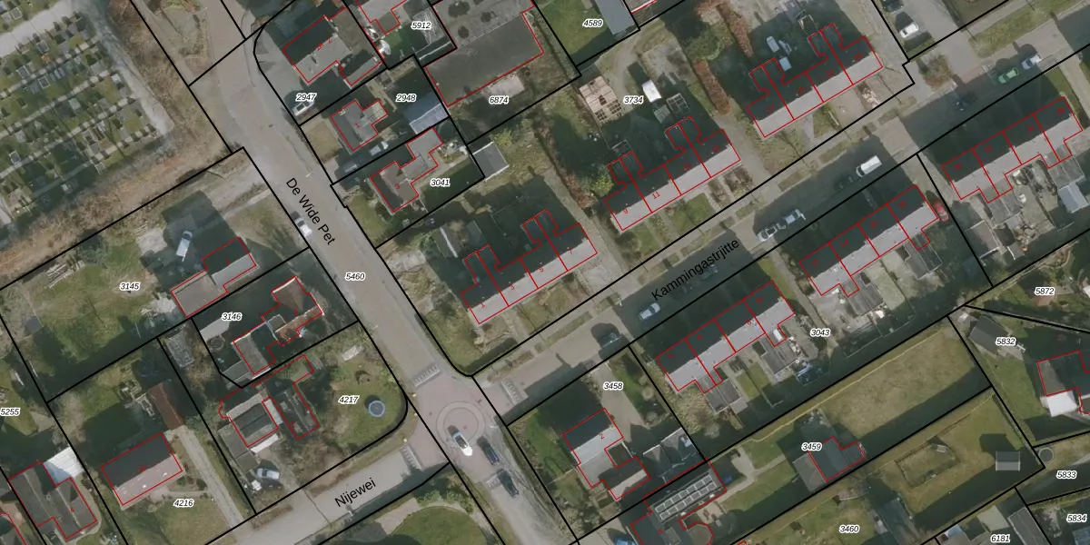 Het perceel waarop Kammingastrjitte 5 staat heeft een oppervlakte van 3417 m². Dit is een zeer groot perceel. De perceeloppervlakte wordt geregistreerd door het Kadaster. Gedetailleerde informatie over de maten van dit perceel kunt u vinden in het rapport Kadastrale kaart met maatvoering van Kammingastrjitte 5.