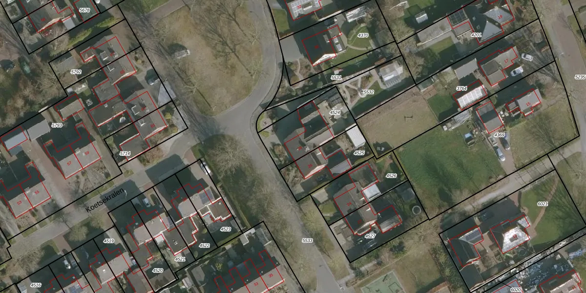 Het perceel waarop Koetsekralen 28 staat heeft een oppervlakte van 452 m². Dit is een groot perceel. De perceeloppervlakte wordt geregistreerd door het Kadaster. Gedetailleerde informatie over de maten van dit perceel kunt u vinden in het rapport Kadastrale kaart met maatvoering van Koetsekralen 28.