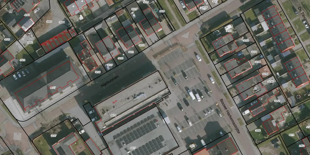 Het perceel waarop Nijebuorren 42 staat heeft een oppervlakte van 1285 m². Dit is een zeer groot perceel. De perceeloppervlakte wordt geregistreerd door het Kadaster. Gedetailleerde informatie over de maten van dit perceel kunt u vinden in het rapport Kadastrale kaart met maatvoering van Nijebuorren 42.
