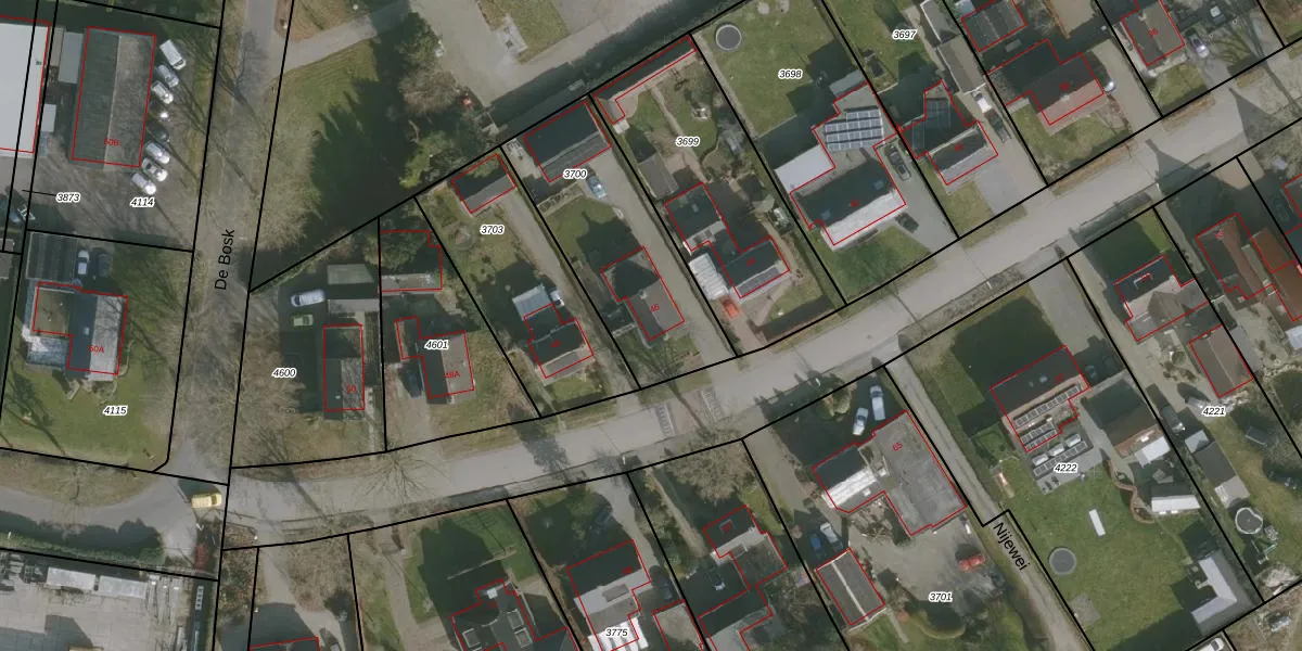 Het perceel waarop Nijewei 46 staat heeft een oppervlakte van 697 m². Dit is een groot perceel. De perceeloppervlakte wordt geregistreerd door het Kadaster. Gedetailleerde informatie over de maten van dit perceel kunt u vinden in het rapport Kadastrale kaart met maatvoering van Nijewei 46.