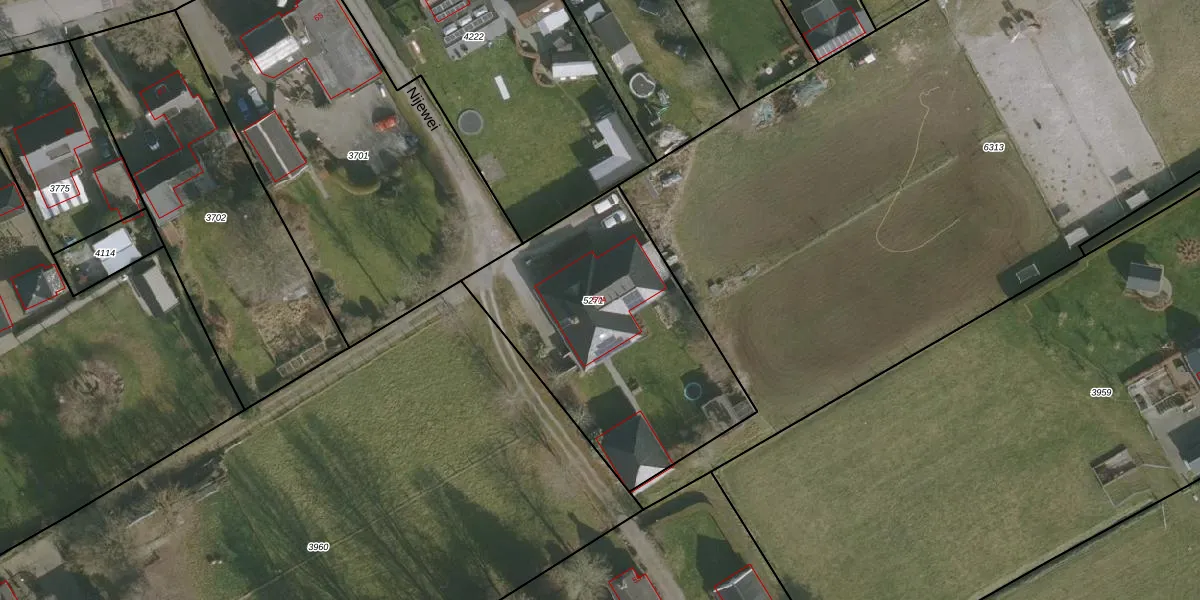 Het perceel waarop Nijewei 57-A staat heeft een oppervlakte van 1255 m². Dit is een zeer groot perceel. De perceeloppervlakte wordt geregistreerd door het Kadaster. Gedetailleerde informatie over de maten van dit perceel kunt u vinden in het rapport Kadastrale kaart met maatvoering van Nijewei 57-A.