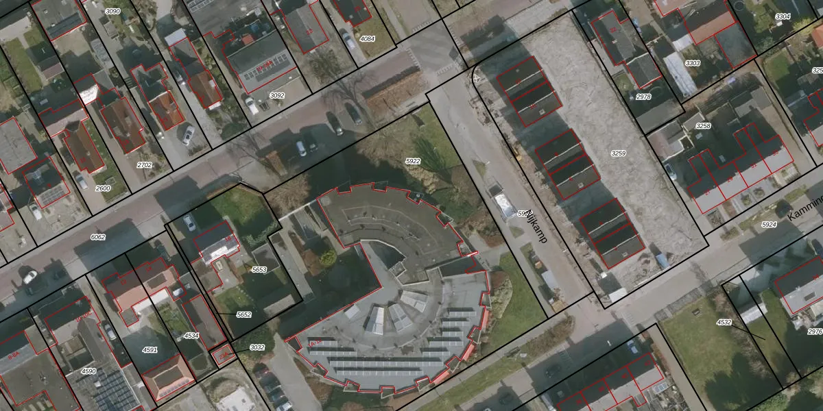Het perceel waarop Nijkamp 1-L staat heeft een oppervlakte van 3730 m². Dit is een zeer groot perceel. De perceeloppervlakte wordt geregistreerd door het Kadaster. Gedetailleerde informatie over de maten van dit perceel kunt u vinden in het rapport Kadastrale kaart met maatvoering van Nijkamp 1-L.