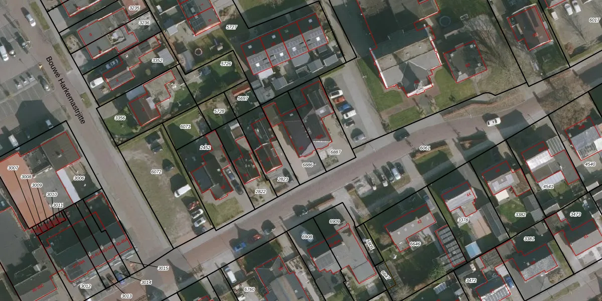 Het adres is gelegen op perceel 6886 in de sectie C en de kadastrale gemeente Surhuizum. De kadastrale aanduiding is aldus SHZ00-C-6886. De gemiddelde perceelgrootte in Surhuizum is 4093,71 m². Dit perceel is kleiner: de perceeloppervlakte bedraagt 286 m². Het grootste perceel in de kadastrale gemeente is 9,0 ha. Het kleinste perceel heeft een oppervlakte van 1 m². Op het perceel bevinden zich geen andere adressen. De huidige grenzen van het perceel zijn digitaal in de Basisregistratie Kadaster (BRK) geregistreerd op 04-07-2023.