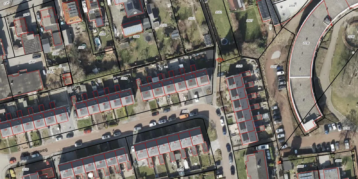 Benningweg 21 is gelegen op kadastraal perceel STR02U1514. Deze kadastrale aanduiding is uniek en wordt gebruikt door het Kadaster om eigendomsrechten en andere zakelijke rechten vast te leggen. Het perceel maakt onderdeel uit van de kadastrale gemeente Slochteren.