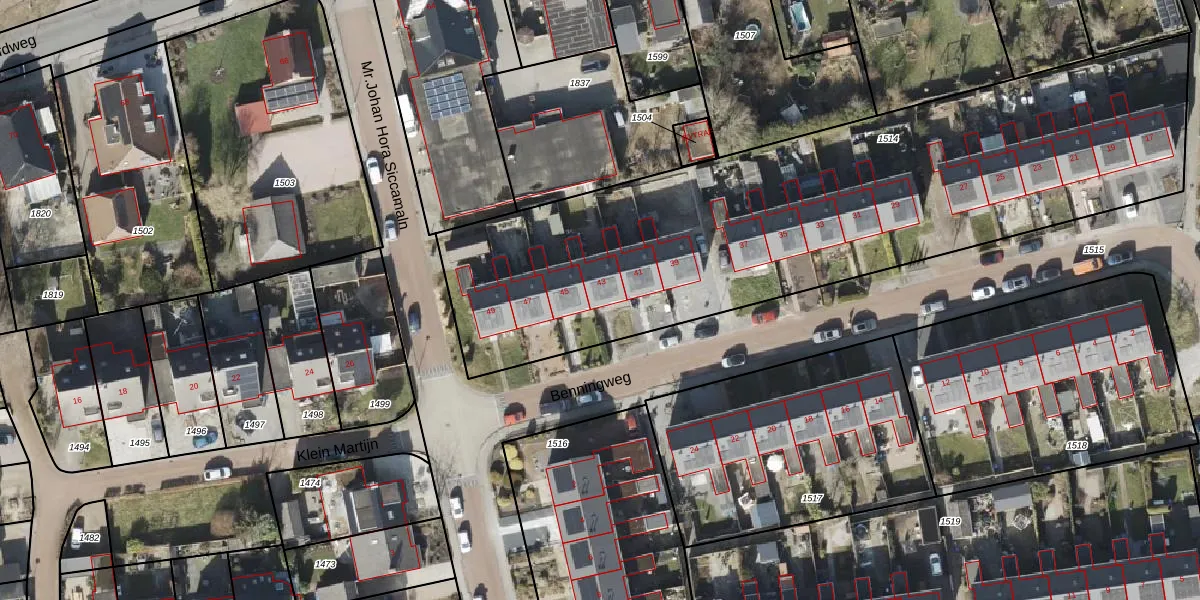Het perceel waarop Benningweg 43 staat heeft een oppervlakte van 3165 m². Dit is een zeer groot perceel. De perceeloppervlakte wordt geregistreerd door het Kadaster. Gedetailleerde informatie over de maten van dit perceel kunt u vinden in het rapport Kadastrale kaart met maatvoering van Benningweg 43.