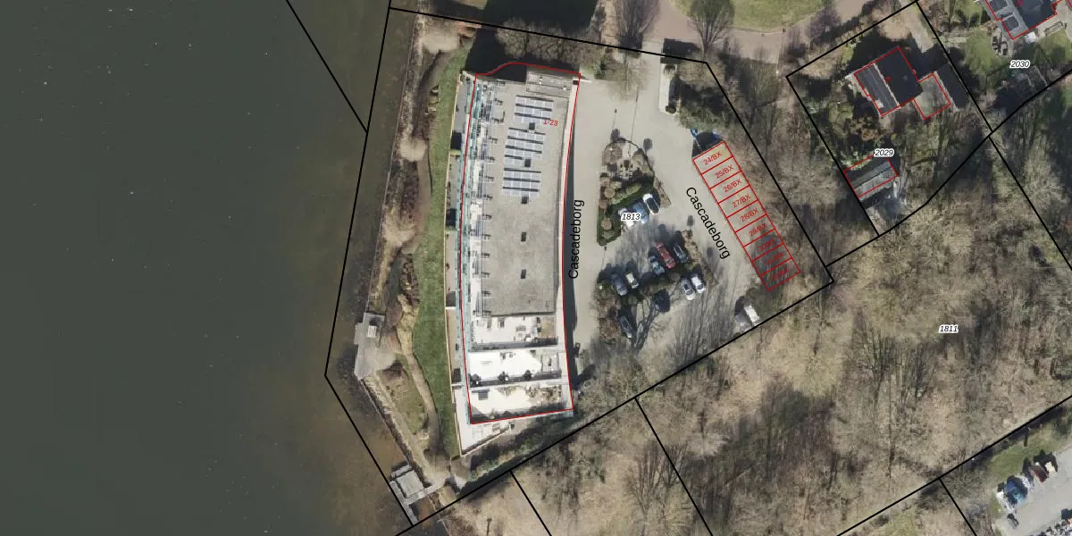 Het perceel waarop Cascadeborg 23 staat heeft een oppervlakte van 5715 m². Dit is een zeer groot perceel. De perceeloppervlakte wordt geregistreerd door het Kadaster. Gedetailleerde informatie over de maten van dit perceel kunt u vinden in het rapport Kadastrale kaart met maatvoering van Cascadeborg 23.