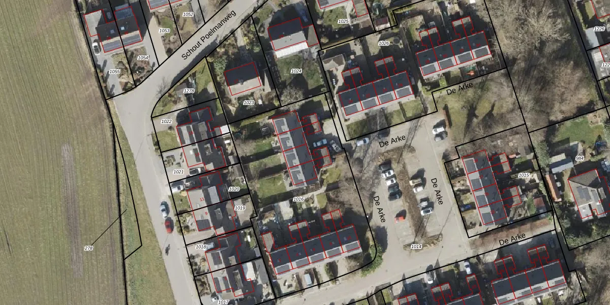 Het perceel waarop De Arke 14 staat heeft een oppervlakte van 2047 m². Dit is een zeer groot perceel. De perceeloppervlakte wordt geregistreerd door het Kadaster. Gedetailleerde informatie over de maten van dit perceel kunt u vinden in het rapport Kadastrale kaart met maatvoering van De Arke 14.
