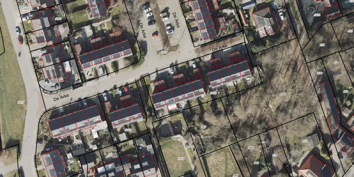De Arke 19 is gelegen op kadastraal perceel STR02V1013. Deze kadastrale aanduiding is uniek en wordt gebruikt door het Kadaster om eigendomsrechten en andere zakelijke rechten vast te leggen. Het perceel maakt onderdeel uit van de kadastrale gemeente Slochteren.