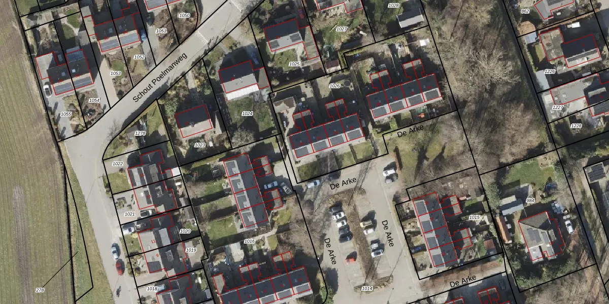 Het perceel waarop De Arke 20 staat heeft een oppervlakte van 1756 m². Dit is een zeer groot perceel. De perceeloppervlakte wordt geregistreerd door het Kadaster. Gedetailleerde informatie over de maten van dit perceel kunt u vinden in het rapport Kadastrale kaart met maatvoering van De Arke 20.