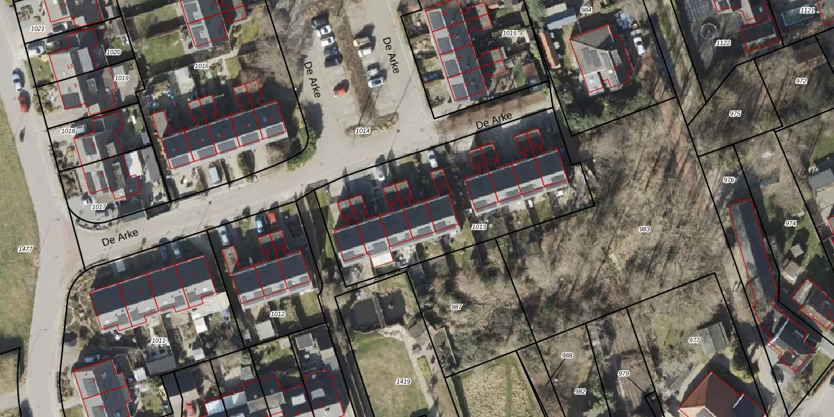 De Arke 21 is gelegen op kadastraal perceel STR02V1013. Deze kadastrale aanduiding is uniek en wordt gebruikt door het Kadaster om eigendomsrechten en andere zakelijke rechten vast te leggen. Het perceel maakt onderdeel uit van de kadastrale gemeente Slochteren.