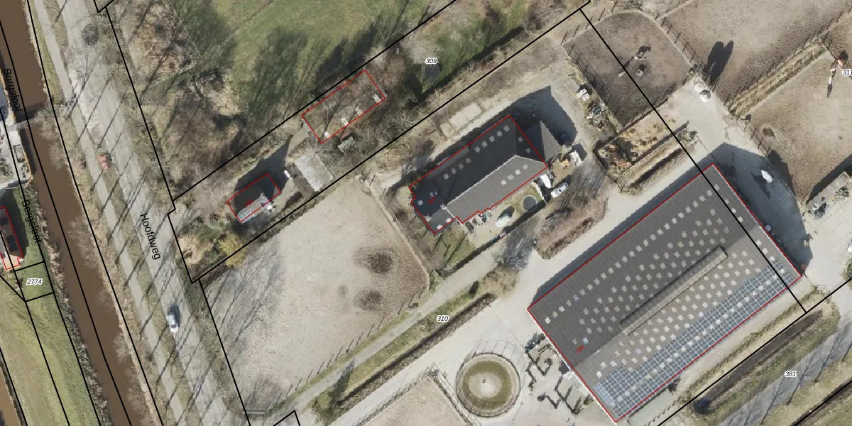 Het perceel waarop Hoofdweg 197 staat heeft een oppervlakte van 1,1 ha. Dit is een zeer groot perceel. De perceeloppervlakte wordt geregistreerd door het Kadaster. Gedetailleerde informatie over de maten van dit perceel kunt u vinden in het rapport Kadastrale kaart met maatvoering van Hoofdweg 197.