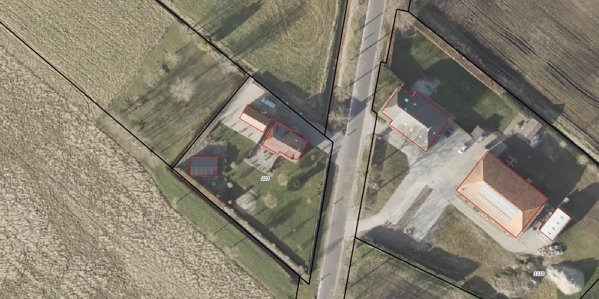 Het perceel waarop het adres ligt is STR02-V-223. De afkorting 'STR02' staat voor kadastrale gemeente Slochteren. Het perceel is kleiner dan gemiddeld in Slochteren. Het perceel is 1962 m² groot, terwijl het gemiddelde ligt op 1,2 ha. Het grootste perceel in de kadastrale gemeente is 2,45 km². Het kleinste perceel heeft een oppervlakte van 0 m². Dit is het enige adres dat aanwezig is op het perceel. In de Basisregistratie Kadaster (BRK) werden de grenzen van het perceel geregistreerd op 18-05-1999.