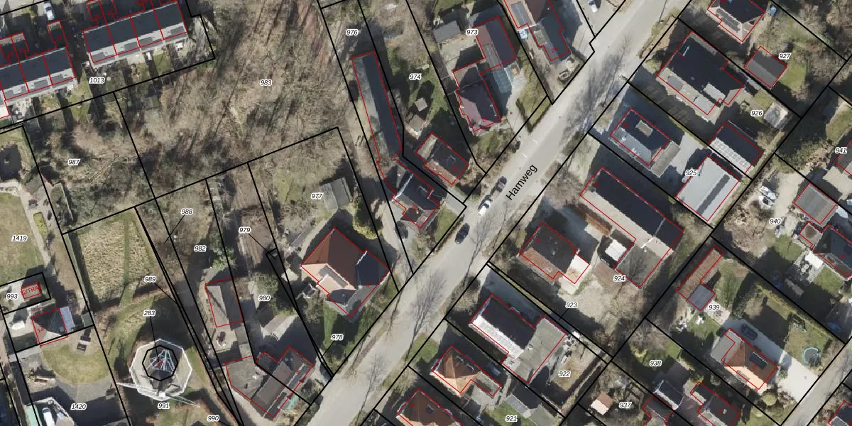 Het perceel waarop Hamweg 20 staat heeft een oppervlakte van 680 m². Dit is een groot perceel. De perceeloppervlakte wordt geregistreerd door het Kadaster. Gedetailleerde informatie over de maten van dit perceel kunt u vinden in het rapport Kadastrale kaart met maatvoering van Hamweg 20.