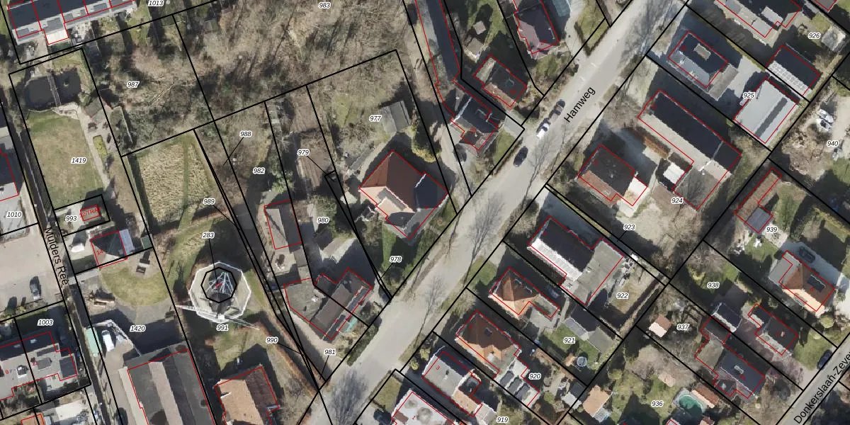 Het perceel waarop Hamweg 8 staat heeft een oppervlakte van 1113 m². Dit is een zeer groot perceel. De perceeloppervlakte wordt geregistreerd door het Kadaster. Gedetailleerde informatie over de maten van dit perceel kunt u vinden in het rapport Kadastrale kaart met maatvoering van Hamweg 8.