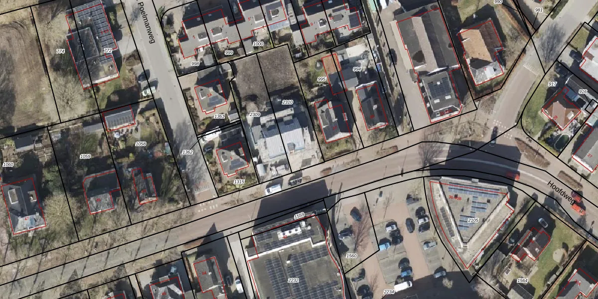 Het perceel waarop Hoofdweg 39 staat heeft een oppervlakte van 466 m². Dit is een groot perceel. De perceeloppervlakte wordt geregistreerd door het Kadaster. Gedetailleerde informatie over de maten van dit perceel kunt u vinden in het rapport Kadastrale kaart met maatvoering van Hoofdweg 39.