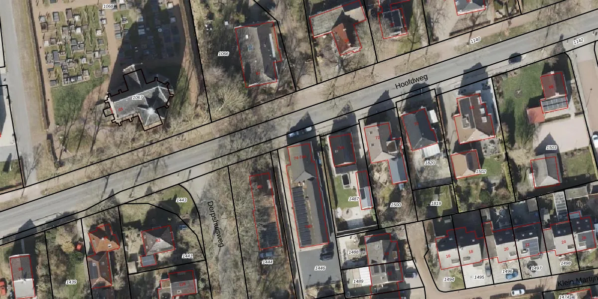 Het perceel waarop Hoofdweg 74 staat heeft een oppervlakte van 740 m². Dit is een groot perceel. De perceeloppervlakte wordt geregistreerd door het Kadaster. Gedetailleerde informatie over de maten van dit perceel kunt u vinden in het rapport Kadastrale kaart met maatvoering van Hoofdweg 74.