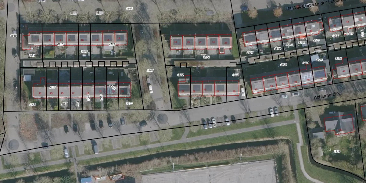 Het perceel waarop Achlumerdijk 27 staat heeft een oppervlakte van 287 m². Dit is een middelgroot perceel. De perceeloppervlakte wordt geregistreerd door het Kadaster. Gedetailleerde informatie over de maten van dit perceel kunt u vinden in het rapport Kadastrale kaart met maatvoering van Achlumerdijk 27.