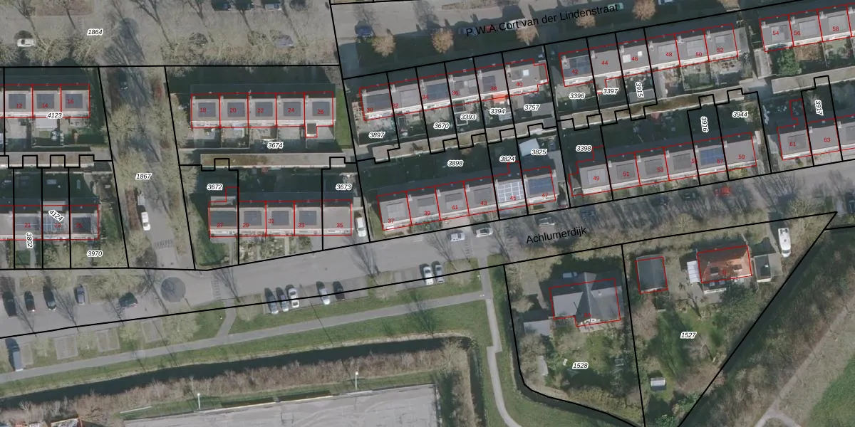 Het perceel waarop Achlumerdijk 39 staat heeft een oppervlakte van 722 m². Dit is een groot perceel. De perceeloppervlakte wordt geregistreerd door het Kadaster. Gedetailleerde informatie over de maten van dit perceel kunt u vinden in het rapport Kadastrale kaart met maatvoering van Achlumerdijk 39.
