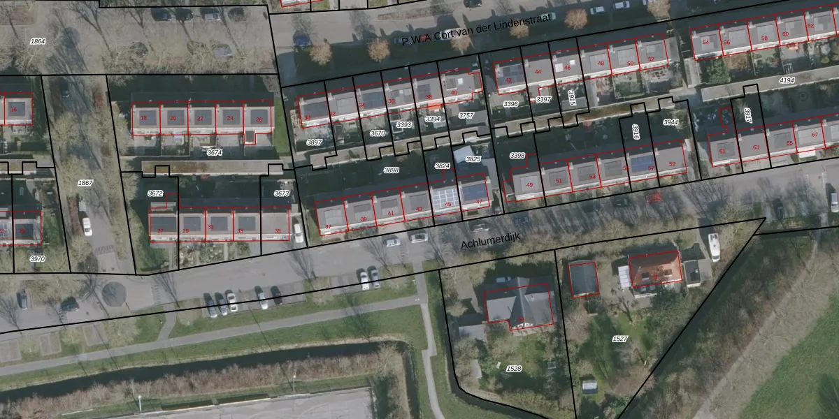 Het perceel waarop Achlumerdijk 43 staat heeft een oppervlakte van 722 m². Dit is een groot perceel. De perceeloppervlakte wordt geregistreerd door het Kadaster. Gedetailleerde informatie over de maten van dit perceel kunt u vinden in het rapport Kadastrale kaart met maatvoering van Achlumerdijk 43.