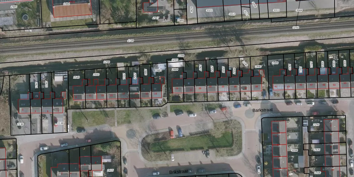 Het perceel waarop Barkstraat 25 staat heeft een oppervlakte van 215 m². Dit is een middelgroot perceel. De perceeloppervlakte wordt geregistreerd door het Kadaster. Gedetailleerde informatie over de maten van dit perceel kunt u vinden in het rapport Kadastrale kaart met maatvoering van Barkstraat 25.