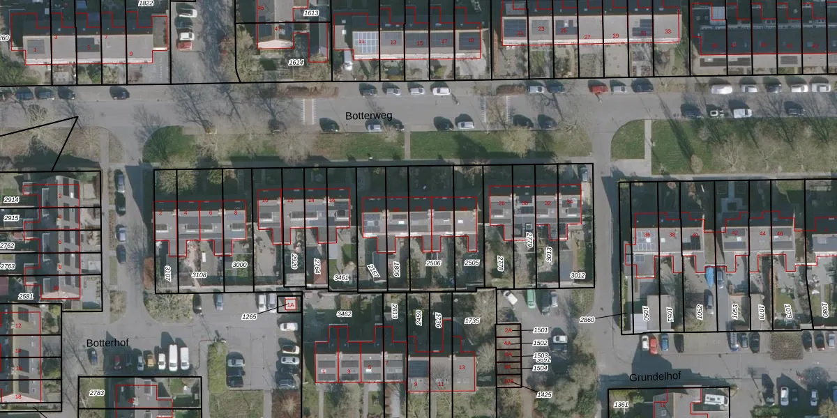 Het perceel waarop Botterweg 22 staat heeft een oppervlakte van 326 m². Dit is een groot perceel. De perceeloppervlakte wordt geregistreerd door het Kadaster. Gedetailleerde informatie over de maten van dit perceel kunt u vinden in het rapport Kadastrale kaart met maatvoering van Botterweg 22.