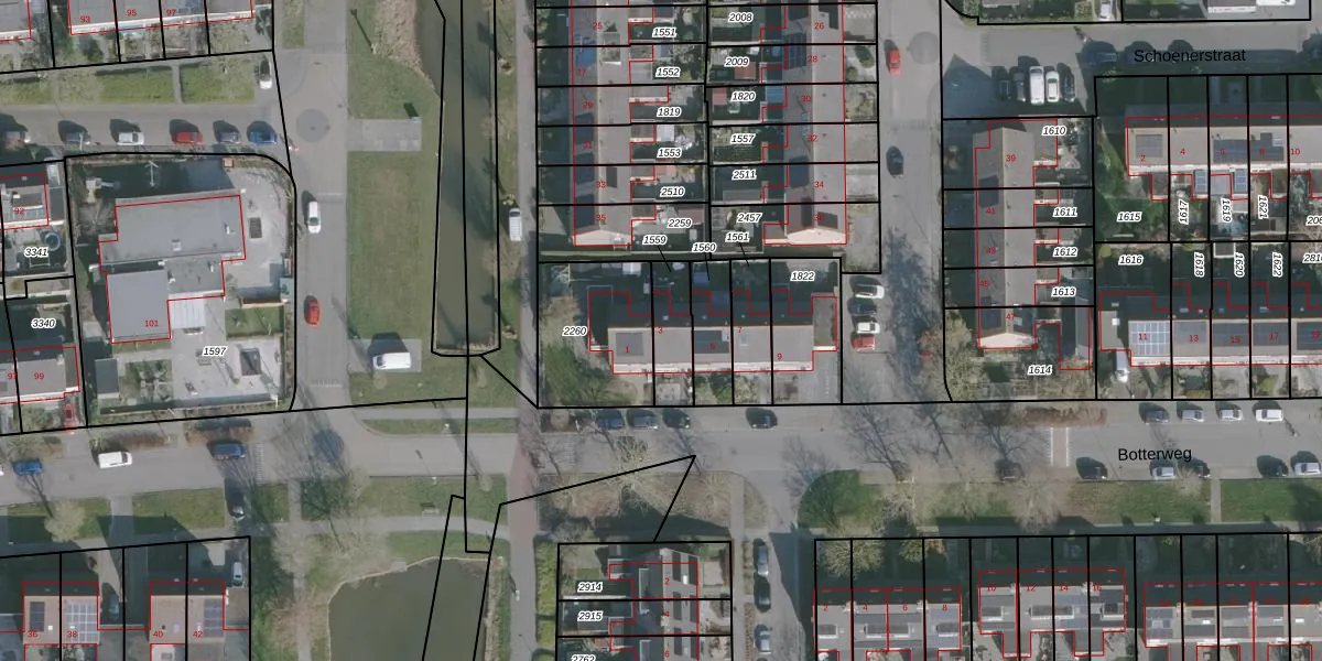 Het perceel waarop Botterweg 3 staat heeft een oppervlakte van 132 m². Dit is een middelgroot perceel. De perceeloppervlakte wordt geregistreerd door het Kadaster. Gedetailleerde informatie over de maten van dit perceel kunt u vinden in het rapport Kadastrale kaart met maatvoering van Botterweg 3.